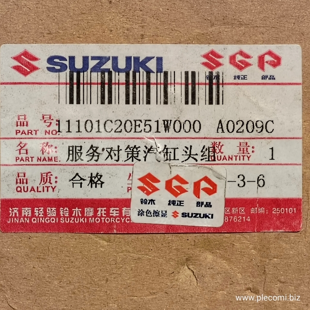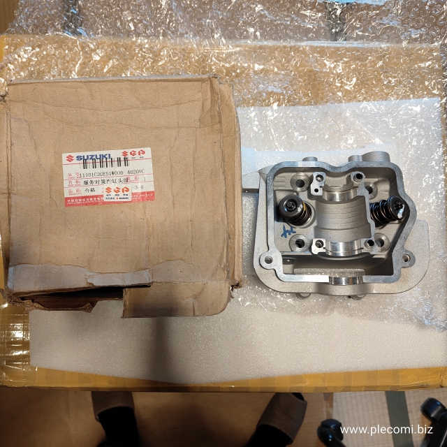 このラベルによると 『サービス対策用シリンダーヘッドセット』と表示されていますので、中国QQスズキ独自設定のようです。面倒なバルブ組付け・すり合わせなどをしなくて済みますね。(中国HJスズキにはないと思います。)この手のものはすぐに絶版になる可能性がありますので、気になるかたはキープにもどうぞ。